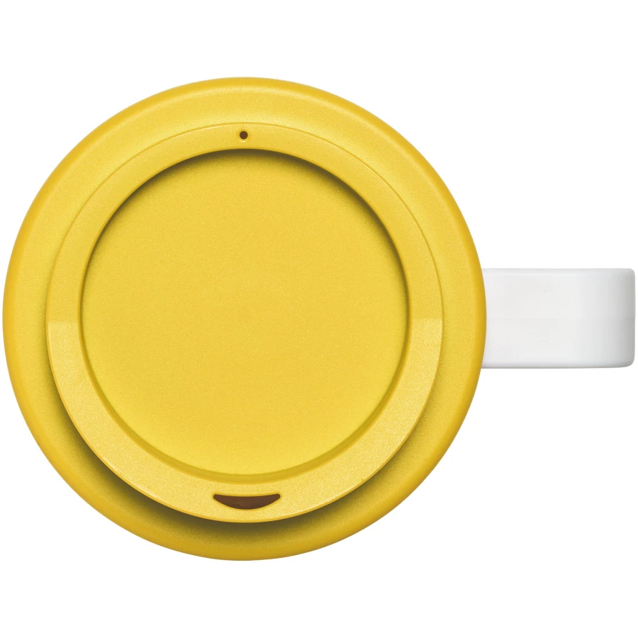 Dwuwarstwowy, izolowany kubek z zakręcaną pokrywą odporną na zalanie i uchwytem. Zewnętrzna warstwa kubka wykonana jest z tworzywa sztucznego pochodzącego z recyklingu. Kubek charakteryzuje się pełnokolorowym, zawijanym wzorem dopasowanym do produktu, dzięki czemu jest trwały. Zgodny z EN12875-1; nadaje się do mycia w zmywarce oraz podgrzewania w kuchence mikrofalowej. Pojemność wynosi 350 ml. Mieszaj i łącz kolory, aby stworzyć idealny kubek. Skontaktuj się z działem obsługi klienta, aby uzyskać informacje o dodatkowych opcjach kolorystycznych. Wykonano w Wielkiej Brytanii. Oferowany w białym pudełku upominkowym. Produkt wolny od BPA. Można myć w zmywarce.