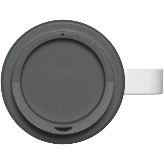 Dwuwarstwowy, izolowany kubek z zakręcaną pokrywą odporną na zalanie i uchwytem. Zewnętrzna warstwa kubka wykonana jest z tworzywa sztucznego pochodzącego z recyklingu. Kubek charakteryzuje się pełnokolorowym, zawijanym wzorem dopasowanym do produktu, dzięki czemu jest trwały. Zgodny z EN12875-1; nadaje się do mycia w zmywarce oraz podgrzewania w kuchence mikrofalowej. Pojemność wynosi 350 ml. Mieszaj i łącz kolory, aby stworzyć idealny kubek. Skontaktuj się z działem obsługi klienta, aby uzyskać informacje o dodatkowych opcjach kolorystycznych. Wykonano w Wielkiej Brytanii. Oferowany w białym pudełku upominkowym. Produkt wolny od BPA. Można myć w zmywarce.
