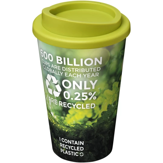Dwuwarstwowy, izolowany kubek z zakręcaną pokrywą odporną na zalanie. Zewnętrzna warstwa kubka wykonana jest z tworzywa sztucznego pochodzącego z recyklingu. Kubek charakteryzuje się pełnokolorowym, zawijanym wzorem dopasowanym do produktu, dzięki czemu jest trwały. Zgodny z EN12875-1; nadaje się do mycia w zmywarce oraz podgrzewania w kuchence mikrofalowej. Pojemność wynosi 350 ml. Mieszaj i łącz kolory, aby stworzyć idealny kubek. Wykonano w Wielkiej Brytanii. Produkt wolny od BPA. Można myć w zmywarce.