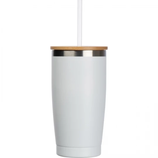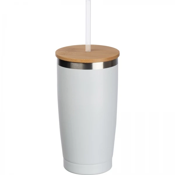 Kubek termiczny ze słomką 500 ml - biały - (83967-06)