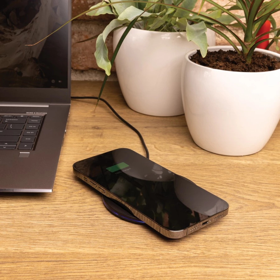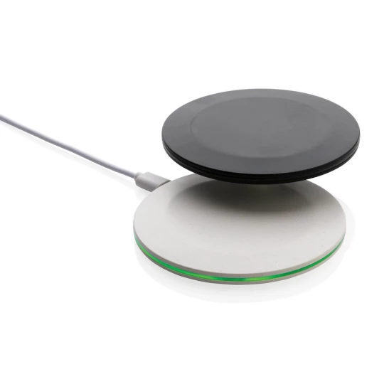 Szybka ładowarka bezprzewodowa 15W, wykonana w 66% z ABS z recyklingu z certyfikatem RCS, zawartość materiałów z recyklingu obliczona w oparciu o wagę całkowitą produktu, działa z telefonami posiadającymi możliwość ładowania indukcyjnego, wejście USB typu C 5V/2A, 9V/2A, 12V/1,5A, wyjście bezprzewodowe 5V/1A, 9V/1.1A, 9 V/1,67A 15W, 120 cm kabel USB typu C z TPE z recyklingu w komplecie, w kraftowym pudełku, nie zawiera PVC