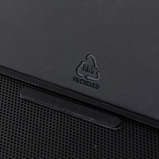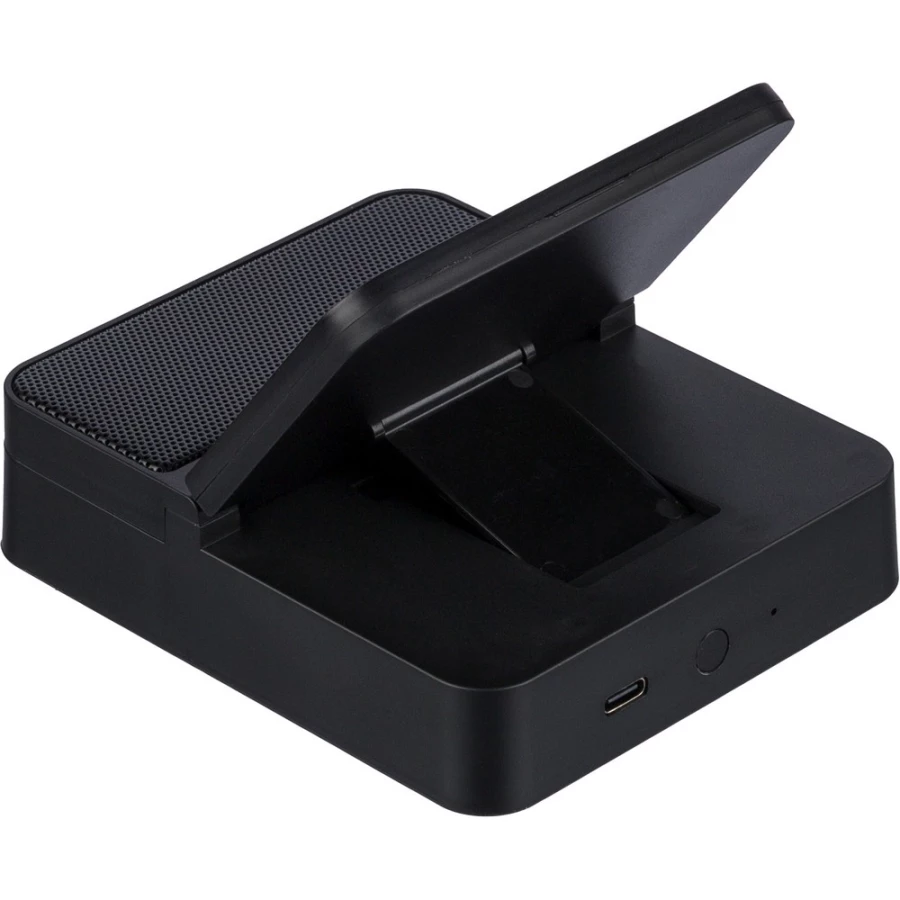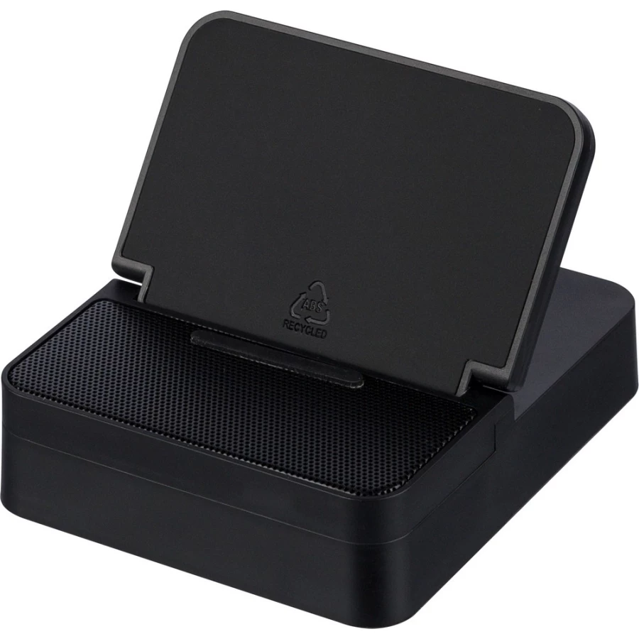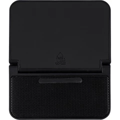 Ładowarka bezprzewodowa 15W, stojak do telefonu, głośnik 5W, bateria 1200 mAh, BT 5.4, wejście 5V/500mA, zapakowany pojedynczo w brązowy kartonik, produkt wykonany z ABS z recyklingu, metalu i PU