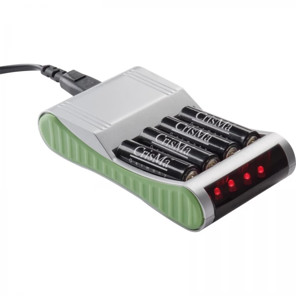 Ładowarka do akumulatorów NiMH (możliwość ładowania 4 na raz). Czas ładowania - 2 godziny. Zawiera wtyczkę do gniazdka.