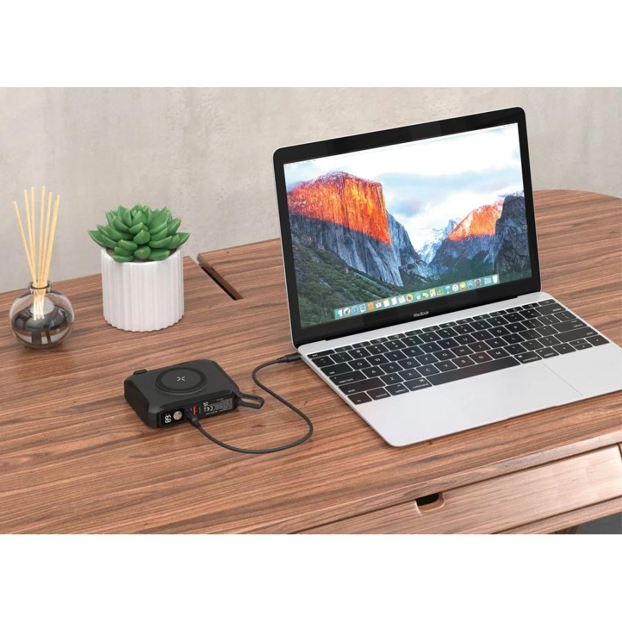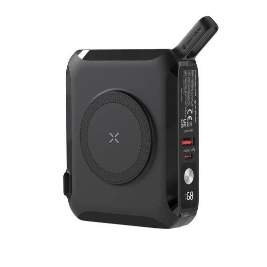 Ładowarka 5 w 1, moc ładowania do 65W, power bank 15000 mAh, ładowarka ścienna, magnetyczna ładowarka bezprzewodowa 15W, adapter podróżny (4 wtyczki w komplecie, kompatybilny w 150 krajach), działa z telefonami posiadającymi możliwość ładowania indukcyjnego, wyjście USB, wyjście/wejście USB typu C, zintegrowany kabel USB typu C