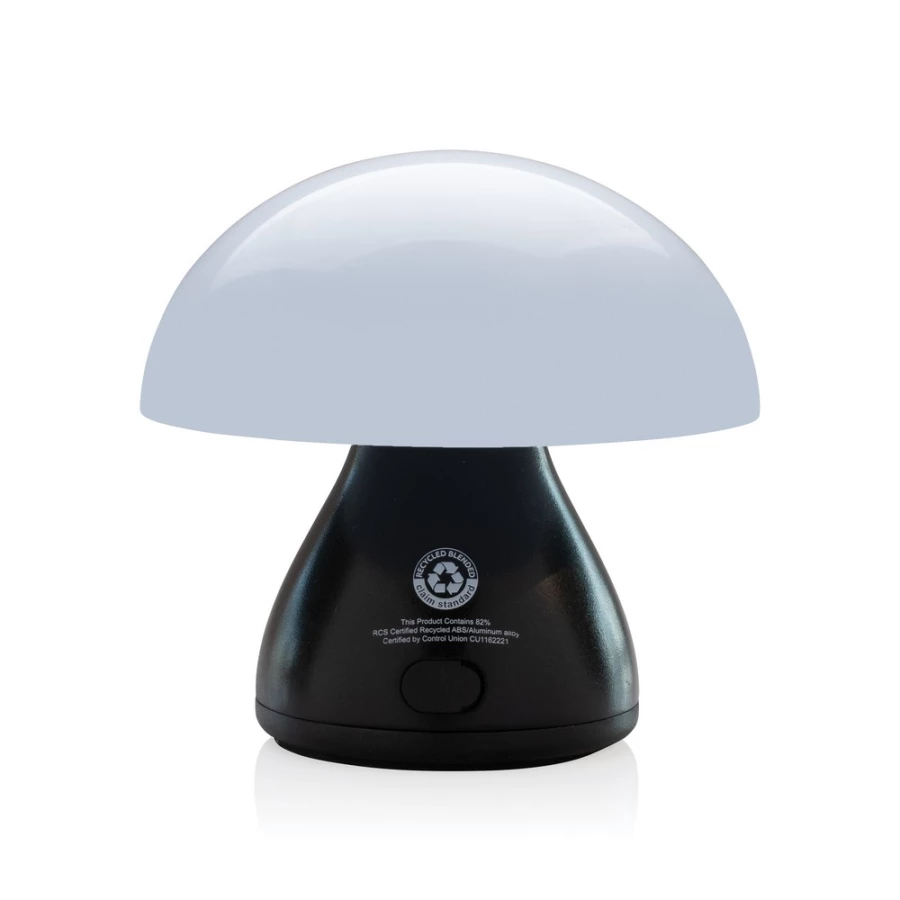 Lampka na biurko, 2 tryby świecenia, przycisk dotykowy w podstawie, wbudowany akumulator pozwala na świecenie do 5 godzin na jednym ładowaniu, ponowne ładowanie w 2 godziny, wejście USB typu C do ładowania, wykonana z ABS i aluminium z recyklingu z certyfikatem RCS, całkowita zawartość materiałów z recyklingu obliczona w oparciu o wagę całkowitą przedmiotu: 42%, w pudełku z papieru kraftowego z certyfikatem FSC® mix, ślad węglowy produktu: 1,21 kg CO2
