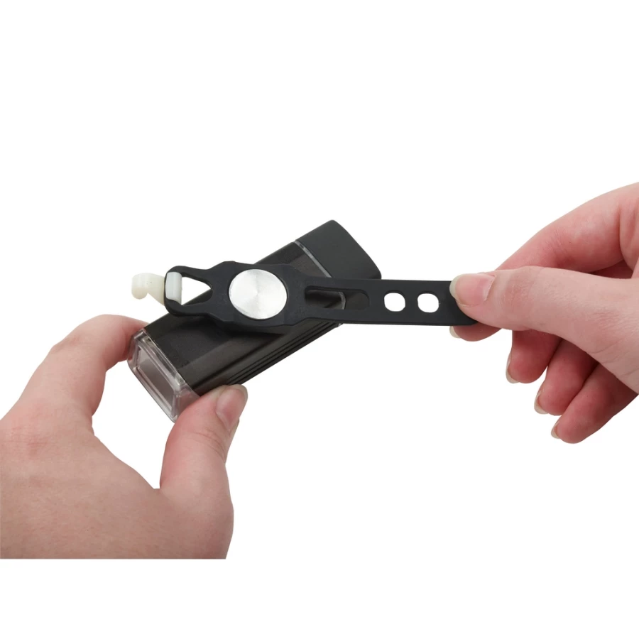 Lampka rowerowa COB ładowana przez USB, 4 tryby oświetlenia: stały, ściemniony, migający szybko, migający wolniej, posiada magnes i pasek mocujący