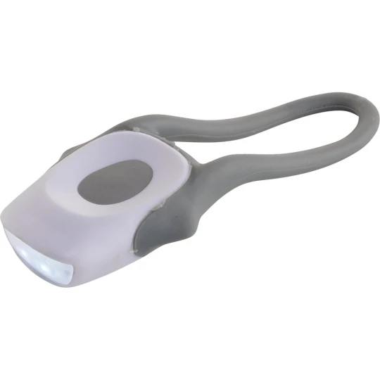 Lampka rowerowa, 2 LED, silikonowy pasek, 2 tryby oświetlenia (stałe i migające), przełącznik on/off (02- światło białe, 05- światło czerwone)