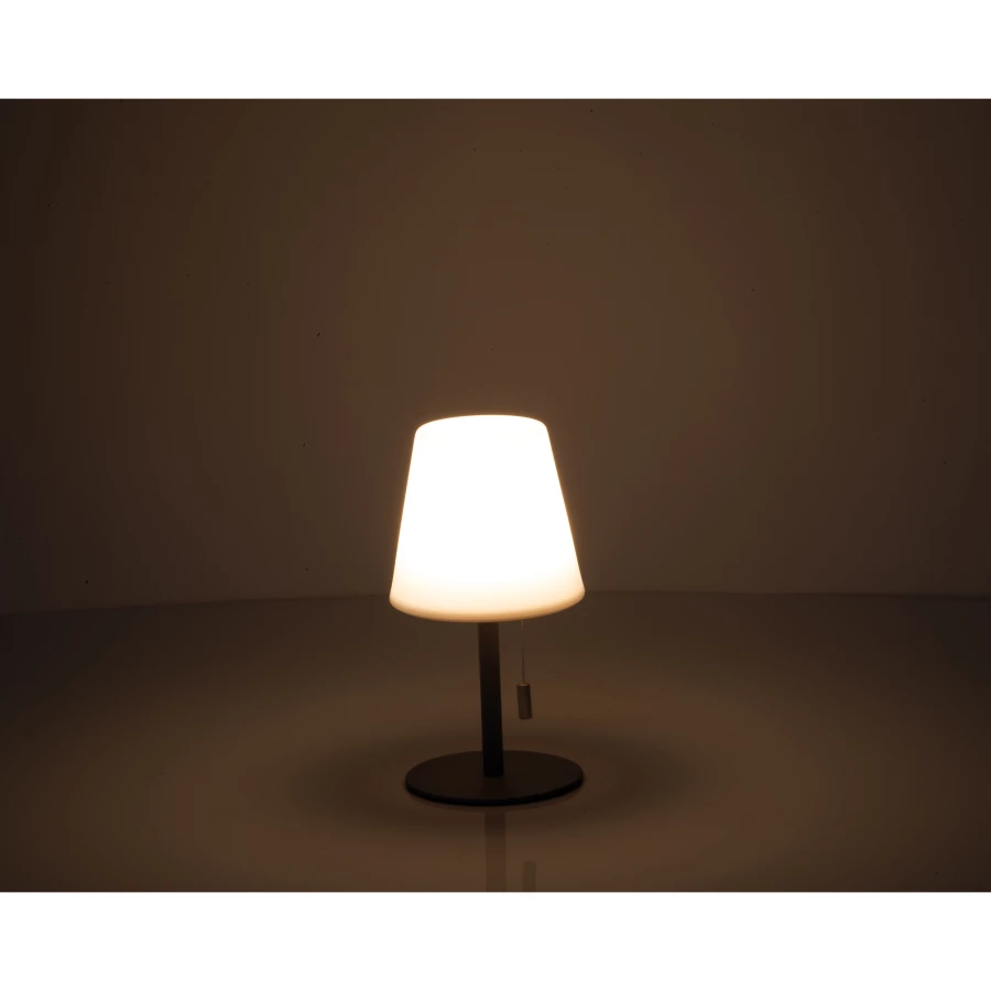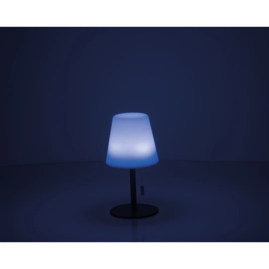 Mała lampka z funkcją zmiany kolorów, w kompaktowym rozmiarze (Ø 11 × 20 cm), z czasem pracy od 4 do 10 godzin, napięciem 3,7 V oraz wbudowanym, ładowalnym akumulatorem o pojemności 1200 mAh. Idealna do ogrodu, na taras lub balkon. Lampa tworzy przyjemną atmosferę na świeżym powietrzu dzięki różnorodnym kolorom światła.