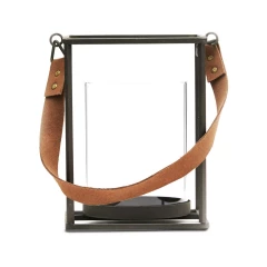 Latarenka, wykonana ze stali i szkła, posiada uchwyt
