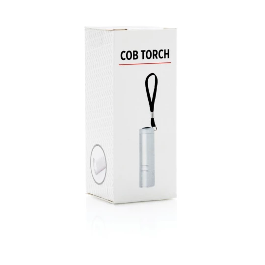 Latarka kieszonkowa COB, bardzo jasne światło, jaśniejsze od standardowych latarek LED, zużywa mniej energii, dzięki czemu może być używana do 30% dłużej na tej samej baterii, obudowa z wytrzymałego aluminium, pasek na rękę, 3 baterie AAA w komplecie, ślad węglowy produktu: 0,58 kg CO2