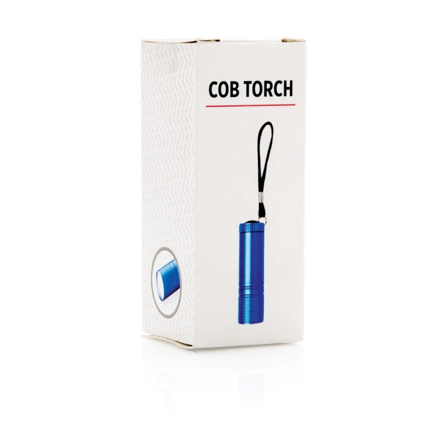 Latarka kieszonkowa COB, bardzo jasne światło, jaśniejsze od standardowych latarek LED, zużywa mniej energii, dzięki czemu może być używana do 30% dłużej na tej samej baterii, obudowa z wytrzymałego aluminium, pasek na rękę, 3 baterie AAA w komplecie, ślad węglowy produktu: 0,58 kg CO2