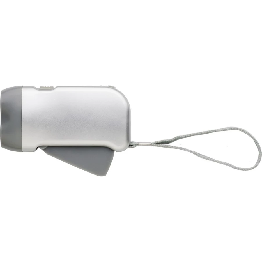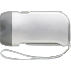 Latarka na dynamo, 2 LED, pasek na rękę w komplecie (patent: EU Nr. 363627-0002)