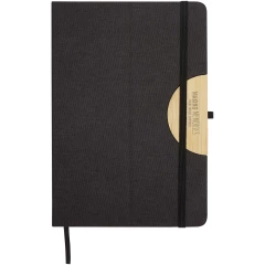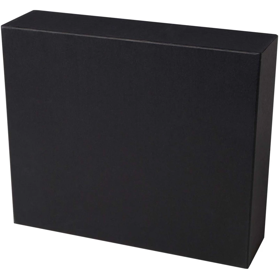 Laura zestaw upominkowy składający się z notatnika A5 RPET w twardej okładce, długopisu, kubka ceramicznego i podkładki. Notatnik ma czarne elastyczne zamknięcie i tasiemkową zakładkę oraz 80 kremowych kartek w linie z papieru o gramaturze 80 g/m². Okładka notesu wraz z bambusowym półkolem pełni funkcję stojaka na telefon. Długopis wykonany z aluminium pochodzącego z recyklingu z certyfikatem RCS i pokryty czarną powłoką w sprayu, z bambusowymi akcesoriami po obu stronach górnej części korpusu. Tusz długopisu: Czarny. Żywotność: 400 metrów. Ceramiczny kubek o pojemności 480 ml jest dostarczany z bambusową podstawką. Myć tylko ręcznie. Wymiary kubka: 11 x 12,7 cm. Średnica podkładki: 9,5 cm. Wymiary pudełka upominkowego: 32 x 27 x 10,3 cm.