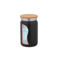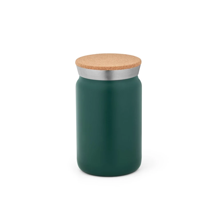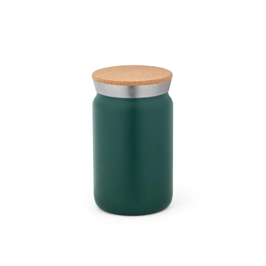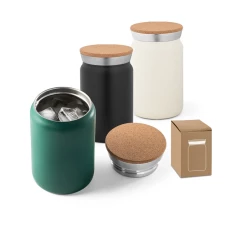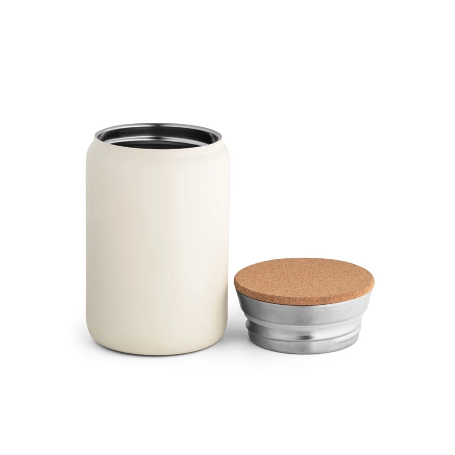Izolowany próżniowo kubek podróżny ze stali nierdzewnej o podwójnych ściankach, ze ścianką wewnętrzną pokrytą miedzią i pokrywką z korka. Kubek o pojemności do 350 mL, który utrzymuje napoje gorące przez 6h i zimne przez 24h. Dostarczany w pudełku upominkowym z papieru kraft. Ponieważ produkt jest wykonany z naturalnych materiałów, kolor i rozmiar produktu oraz wynik drukowania mogą się różnić w zależności od produktu. ø73 x 125 mm