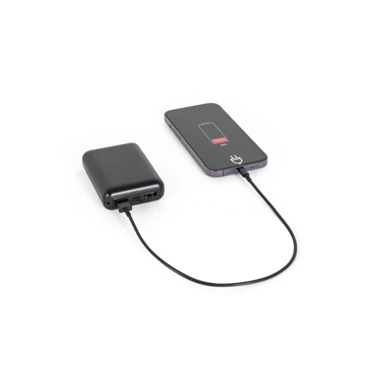 Power bank o dużej pojemności z wskaźnikiem poziomu naładowania i różnymi portami wejściowymi i wyjściowymi. Jego konstrukcja z zaokrąglonymi narożnikami sprawia, że jest to elegancki wybór do codziennego użytku.Materiał: ABS z recyklingu (100% rABS)Pojemność: 10 000 mAhWejście: microUSB, USB-C (10 W)Wyjście: USB-C, 2 x USB-A (12 W)Funkcje: umożliwia jednoczesne ładowanie 3 urządzeńZawartość: kabel USB-A / USB-COpakowanie: pudełko prezentowe wykonane z papieru kraftowego z recyklingu. 92 x 64 x 26 mm | Pudełko: 75 x 115 x 30 mm
