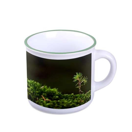Kubek sublimacyjny o minimalistycznym i nowoczesnym designie. Posiada wnętrze w kilku odcieniach do wyboru. Można na niego nanosić nadruki w fotograficznej jakości. Posiada ciekawy akcent w postaci występującego w trzech modnych odcieniach paska na rancie.