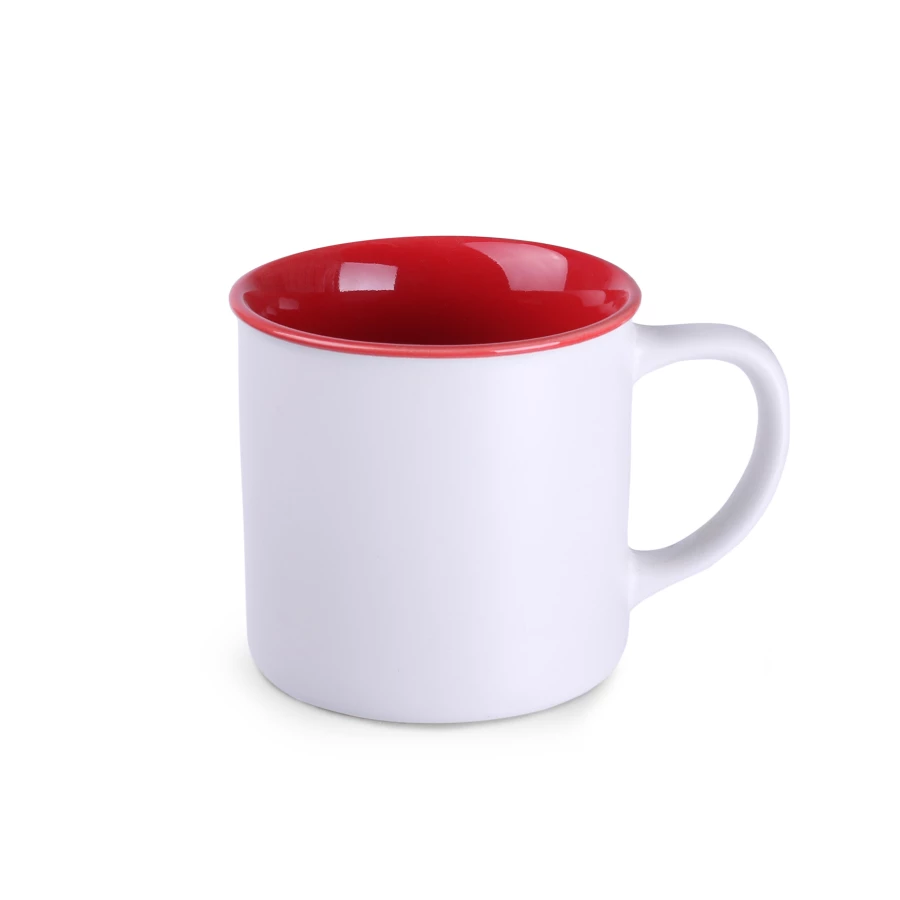 Modny minimalistyczny kubek z subtelną matową powierzchnią w białym kolorze. Występuje w kilku opcjach kolorowego wnętrza. Posiada duże możliwości nadruku. Idelanie podkreśli nowoczesny charakter marki.