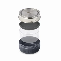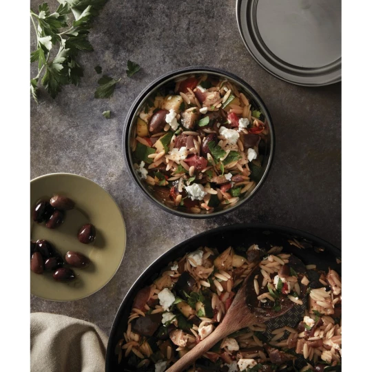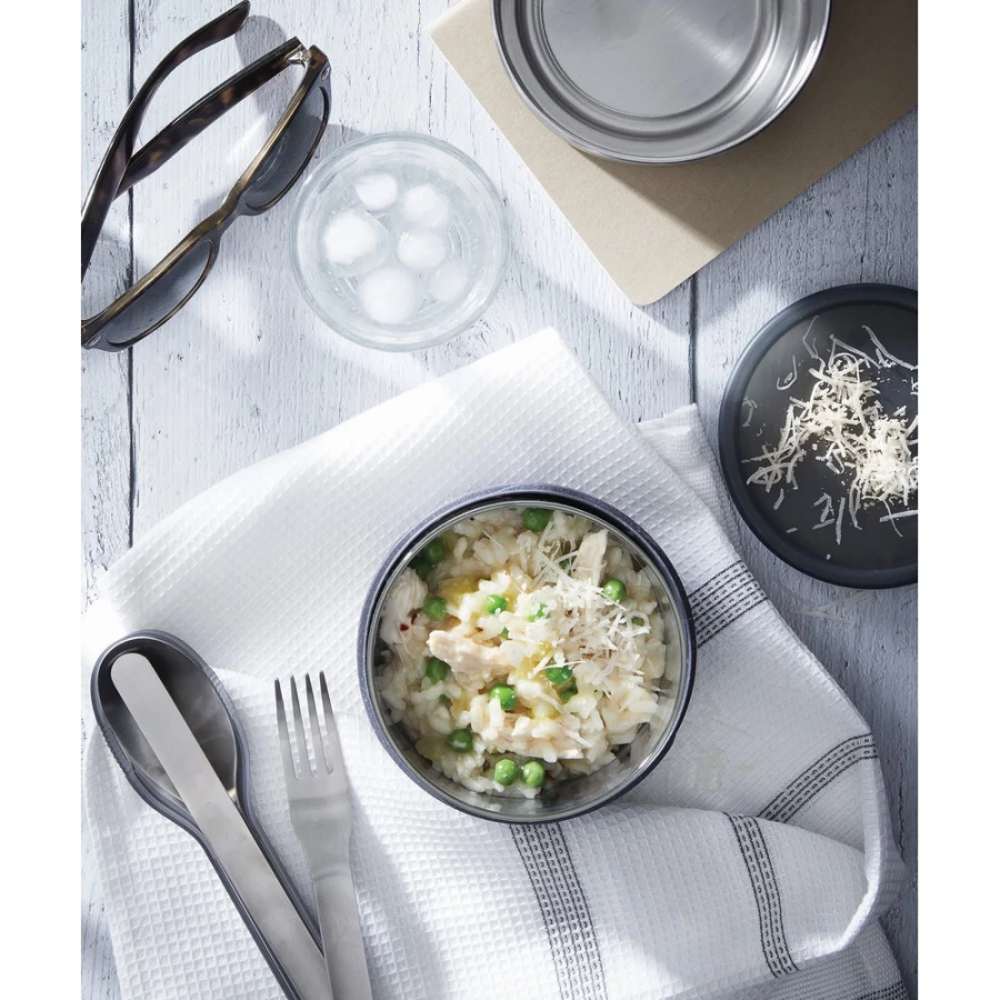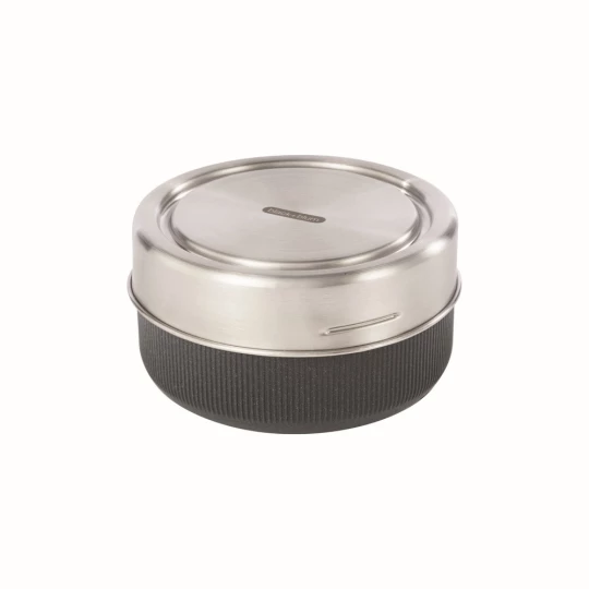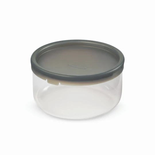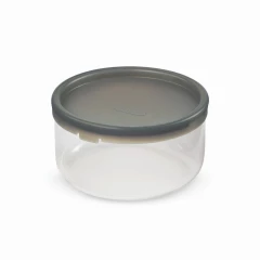 Pudełko śniadaniowe 750 ml wykonane ze szkła, podstawa pojemnika wykonana jest z polipropylenu połączonego z włóknem drzewnym, co zapewnia ochronę szklanej miski i ułatwia trzymanie po podgrzaniu, można myć w zmywarce