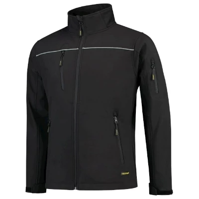 3-warstwowy softshell z membraną, wodoodporny, wiatroodporny i oddychający materiał, prosty krój ze szwami bocznymi, zamek błyskawiczny z odwróconym suwakiem na całej długości z ochroną podbródka, regulowane obszycia rękawów za pomocą rzepu, dolny brzeg regulowany za pomocą elastycznego ściągacza, kieszenie z odwróconym spiralnym zamkiem błyskawicznym, kieszeń na piersi, kieszeń na rękawie, elementy odblaskowe, Tricorp kod produktu: 402006