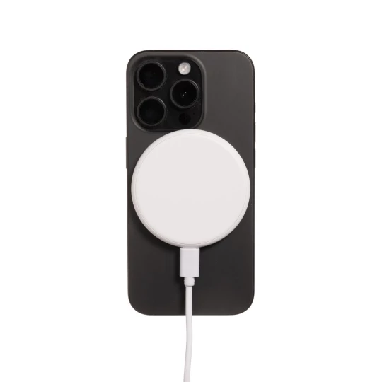 Bezprzewodowa, magnetyczna ładowarka 3 w 1 15W, nadaje się do ładowania telefonu, słuchawek i smartwatcha, wykonana z ABS z recyklingu, działa z telefonami posiadającymi możliwość ładowania indukcyjnego, wyjścia 9V/2.2A, 9V/0.4A, 9V/0.5A, kabel 120 cm z TPE z recyklingu w komplecie, całkowita zawartość materiałów z recyklingu obliczona w oparciu o wagę całkowitą przedmiotu: 35%, w pudełku z certyfikatem FSC® mix