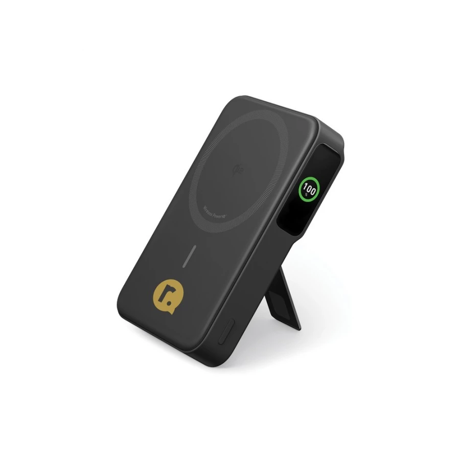 Power bank 10000 mAh, magnetyczna ładowarka bezprzewodowa 15W, składany stojak na telefon, wbudowany wyświetlacz, wyjście/wejście USB-C, działa z telefonami posiadającymi możliwość ładowania indukcyjnego