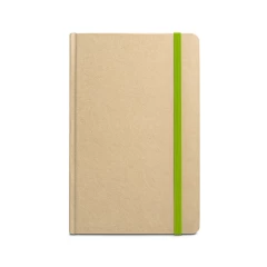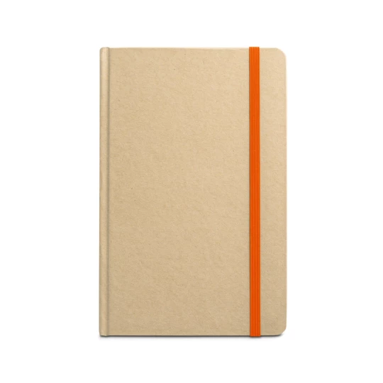 Notes A5 ze 160 stronami w linie (60 g/m²), wykonanych w 100% z papieru z recyklingu, i twardą okładką w 100% z papieru z recyklingu. Zawiera zakładkę z tasiemki oraz gumkę w pasującym kolorze. 137 x 210 mm