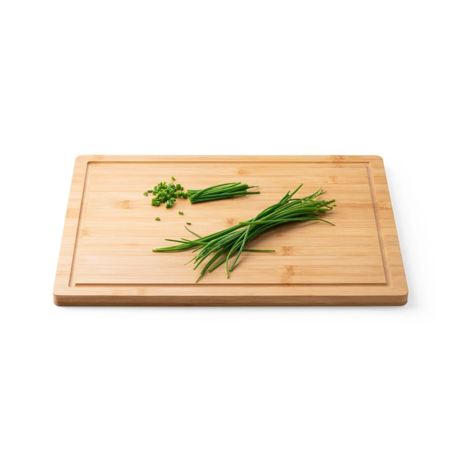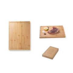 Bambusowa deska do krojenia z rowkiem. Dostarczana w pudełku upominkowym typu papieru kraft. Ponieważ produkt jest wykonany z naturalnych materiałów, kolor produktu oraz wynik drukowania mogą się różnić w zależności od produktu. 400 x 300 x 15 mm