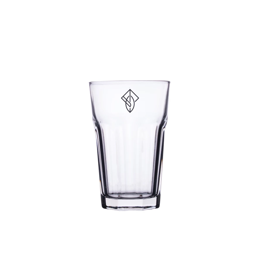 Popularna szklanka z grubościennego szkła. Kształt dolnej części z charakterystycznymi żłobieniami zapewnia pewny uchwyt. Część górna umożliwia naniesienie dobrze wyeksponowanego nadruku.
