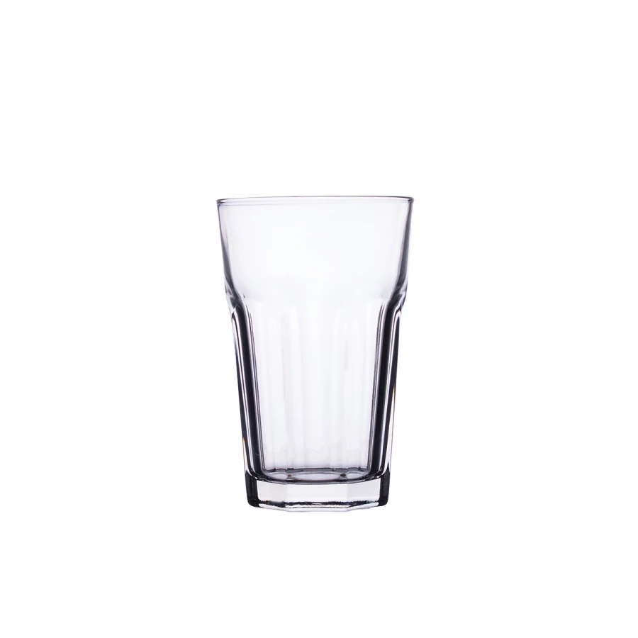 Popularna szklanka z grubościennego szkła. Kształt dolnej części z charakterystycznymi żłobieniami zapewnia pewny uchwyt. Część górna umożliwia naniesienie dobrze wyeksponowanego nadruku.