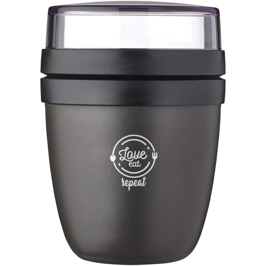 Pojemnik na lunch Ellipse Mini idealnie nadaje się do przechowywania przekąsek, np. jogurtu z musli lub zupy z grzankami. Dzięki dwóm inteligentnym przegródkom w jednym wytrzymałym pojemniku Twoje produkty będą zawsze starannie oddzielone. Jego kompaktowy rozmiar sprawia, że idealnie mieści się w plecaku szkolnym, dzięki czemu można go w niego wygodnie zapakować przekąski na szybki posiłek. Górny przezroczysty pojemnik ma pojemność 120 ml, idealną na około 50 gramów musli lub owoców, a dolny pojemnik ma pojemność 300 ml. Pojemnik jest szczelny i można go myć w zmywarce. Wolne od BPA.
