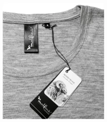 bardzo delikatna wełna merynosowa, odporny na zagniecenia i wysoce oddychający materiał, właściwości termoregulacyjne i antybakteryjne, zdolność odprowadzania wilgoci i absorpcji zapachów, krój slim-fit ze szwami bocznymi, szersza okrągła lamówka , wąska lamówka z materiału wierzchniego, lamówka na karku wzmocniona taśmą z materiału wierzchniego, szew wzmacniający na ramionach, długie rękawy z mankietami, zalecane suszenie w pozycji poziomej