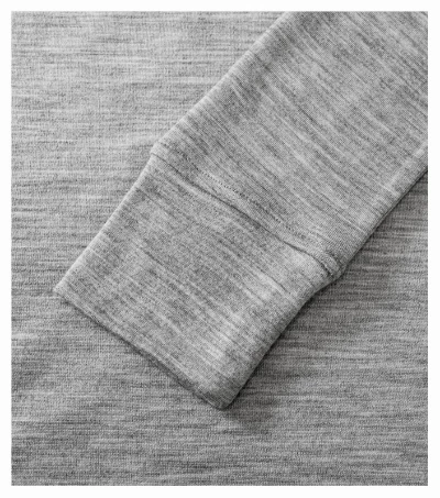 bardzo delikatna wełna merynosowa, odporny na zagniecenia i wysoce oddychający materiał, właściwości termoregulacyjne i antybakteryjne, zdolność odprowadzania wilgoci i absorpcji zapachów, krój slim-fit ze szwami bocznymi, szersza okrągła lamówka , wąska lamówka z materiału wierzchniego, lamówka na karku wzmocniona taśmą z materiału wierzchniego, szew wzmacniający na ramionach, długie rękawy z mankietami, zalecane suszenie w pozycji poziomej