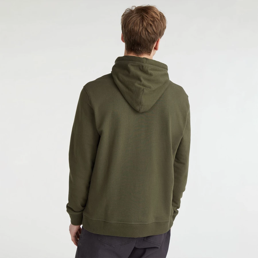 Materiał: 60% bawełna, 40% poliester z recyklingu Regularny krój Kieszeń kangurka Kaptur regulowany sznurkiem Ściągacze przy mankietach i u dołu bluzy Duże logo z przodu