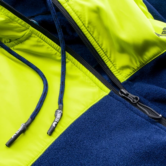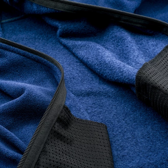 materiał: 100% poliester, 210 g/m2 regulowany kaptur wysoki kołnierz z osłoną na końcówkę zamka 2 zapinane na zamek kieszenie