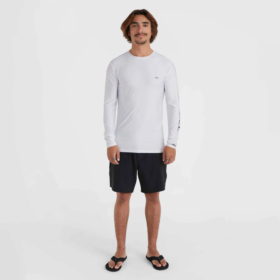 Materiał: 85% poliester z recyklingu (REPREVE), 15% elastan Dopasowany krój Elastyczny materiał o średniej gramaturze 190 g/m² Ochrona przed promieniowaniem UV UPF 50+, Nadruk plastizolowy na klatce piersiowej i lewym rękawie Długi rękaw Program O'Neill Blue - zrównoważone pozyskiwanie surowców w zgodzie ze środowiskiem