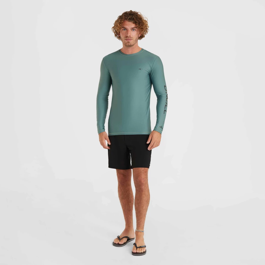 Materiał: 85% poliester z recyklingu (REPREVE), 15% elastan Dopasowany krój Elastyczny materiał o średniej gramaturze 190 g/m² Ochrona przed promieniowaniem UV UPF 50+, Nadruk plastizolowy na klatce piersiowej i lewym rękawie Długi rękaw Program O'Neill Blue - zrównoważone pozyskiwanie surowców w zgodzie ze środowiskiem