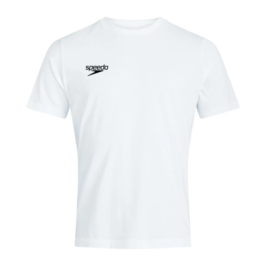 Materiał: 60% bawełna, 40% poliester Gramatura: 160 g/m² Mieszanka bawełny i poliestru zapewnia wygodne dopasowanie i komfort noszenia Szwy na ramionach skierowane do przodu zapewniają dodatkowy komfort podczas noszenia plecaka lub torby Okrągły dekolt Krótki rękaw Małe logo Speedo po prawej stronie