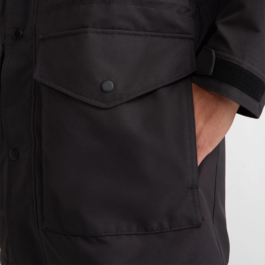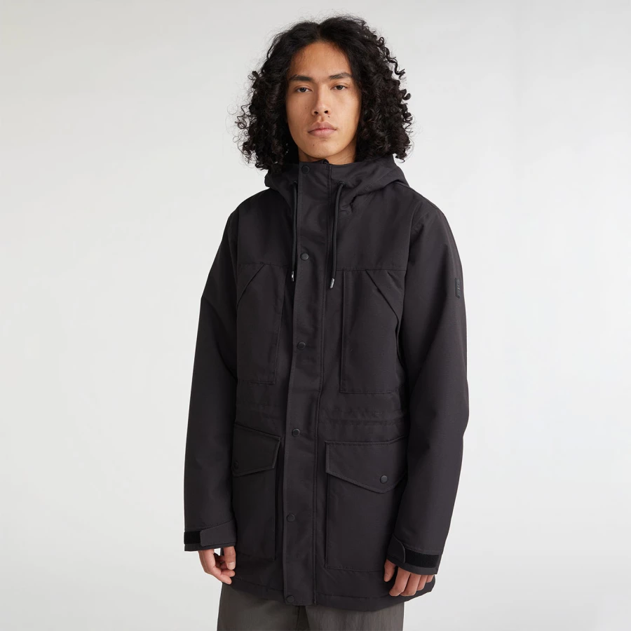 Materiał: 55% poliester z recyklingu, 45% poliester Regularny krój Wodoodporność: 10.000 mm H2O Oddychalność: 10.000 gr/m²/24h Izolacja 140 g w korpusie, z czego 90% stanowi poliester Repreve® z recyklingu Szwy klejone w newralgicznych miejscach Podszewka Firewall Magma – anatomicznie rozmieszczona otulina zapewnia maksymalną ochronę przed zimnem Stały, regulowany kaptur za pomocą sznurka Regulowana talia Plisa przeciwwiatrowa zwiększa ochronę przed warunkami pogodowymi Liczne kieszenie Mankiety regulowane na rzep