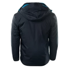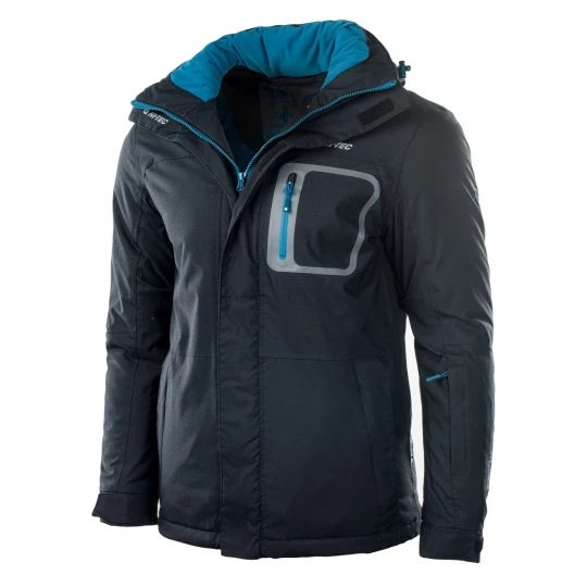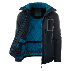 materiał kurtki: 100% poliester podszewka: 100% nylon wypełnienie: 100% poliester, 120 g/m2 (korpus) 80 g/m2 (rękawy) odporność na przemakanie: 5 000 mm H2O oddychalność: 1 000 g H2O /m2 podklejone szwy wentylacja fartuch przeciwśnieżny odpinany, regulowany kaptur dwie kieszenie boczne zapinane na zamki kieszeń piersiowa zapinana na zamek kieszeń na skipass elementy odblaskowe