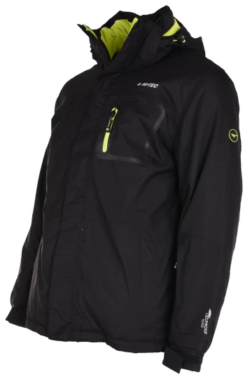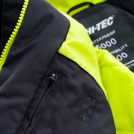 materiał kurtki: 100% poliester podszewka: 100% nylon wypełnienie: 100% poliester, 120 g/m2 (korpus) 80 g/m2 (rękawy) odporność na przemakanie: 5 000 mm H2O oddychalność: 1 000 g H2O /m2 podklejone szwy wentylacja fartuch przeciwśnieżny odpinany, regulowany kaptur dwie kieszenie boczne zapinane na zamki kieszeń piersiowa zapinana na zamek kieszeń na skipass elementy odblaskowe