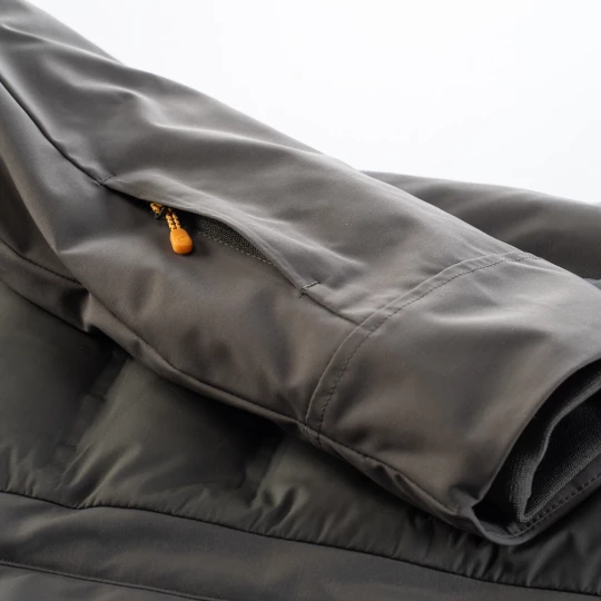 KURTKA ZIMOWA SKŁAD MATERIAŁOWY: MATERIAŁ ZEWNĘTRZNY: 100% POLIESTER PODSZEWKA: 100% POLIESTER WYPEŁNIENIE: 100% POLIESTER, 120 g/m2 (TORS), 100 g/m2 (RĘKAW) SPECYFIKACJA: WODOODPORNOŚĆ: 10 000 mm H2O ODDYCHALNOŚĆ: 1 000 g H2O/m² POWŁOKA DWR WENTYLACJA ODPINANY KAPTUR KIESZONKA NA SKIPASS ODBLASKOWE ELEMENTY