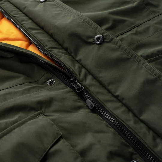 KURTKA ZIMOWA SKŁAD MATERIAŁOWY: MATERIAŁ ZEWNĘTRZNY: 100% POLIESTER PODSZEWKA: 100% POLIESTER WYPEŁNIENIE: 100% POLIESTER, 160 g/m2 (TORS), 120 g/m2 (RĘKAW) SPECYFIKACJA: - WODOODPORNOŚĆ 10 000 mm H²O - ODDYCHALNOŚĆ 1 000 g H²O/m² - MEMBRANA DWUWARSTWOWA - POWŁOKA DWR - KLEJONE SZWY - WENTYLACJA - ODPINANY KAPTUR - ODBLASKOWE ELEMENTY