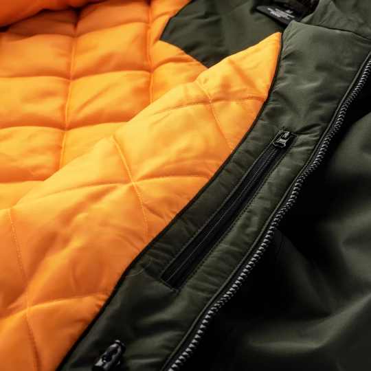 KURTKA ZIMOWA SKŁAD MATERIAŁOWY: MATERIAŁ ZEWNĘTRZNY: 100% POLIESTER PODSZEWKA: 100% POLIESTER WYPEŁNIENIE: 100% POLIESTER, 160 g/m2 (TORS), 120 g/m2 (RĘKAW) SPECYFIKACJA: - WODOODPORNOŚĆ 10 000 mm H²O - ODDYCHALNOŚĆ 1 000 g H²O/m² - MEMBRANA DWUWARSTWOWA - POWŁOKA DWR - KLEJONE SZWY - WENTYLACJA - ODPINANY KAPTUR - ODBLASKOWE ELEMENTY