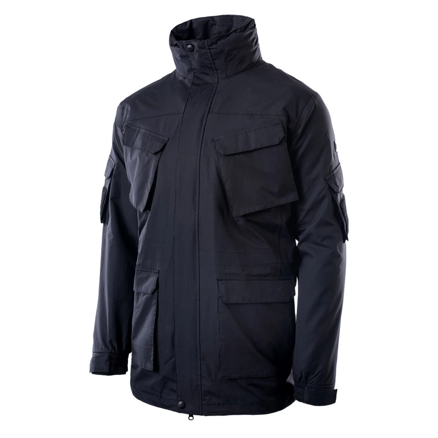 materiał: 100% nylon technologia Tecproof 5000 zapewnia łagodne odpychanie wody od materiału materiał 320D nylon Taslon zapewnia odporność na wiatr i wodę oraz dobrą oddychalność ocieplająca podpinka softshell kaptur ukryty w kołnierzu regulowane mankiety z rzepami 2 główne kieszenie cargo z bocznymi zamkami 2 kieszenie piersiowe naszyte ukośnie 2 kieszenie na ramionach rzepy na ramionach – ID panel otwory wentylacyjne