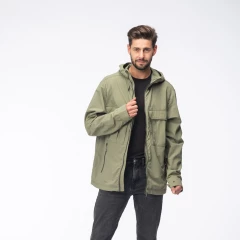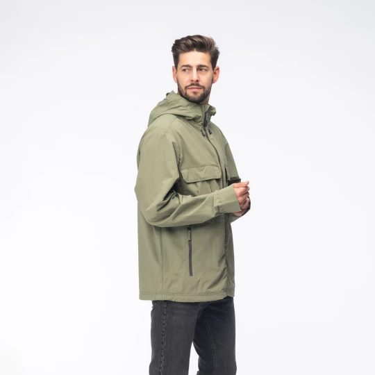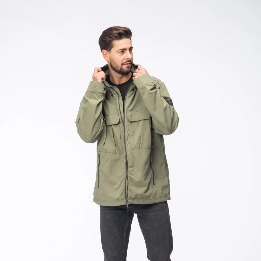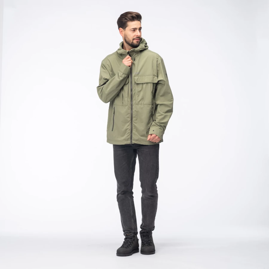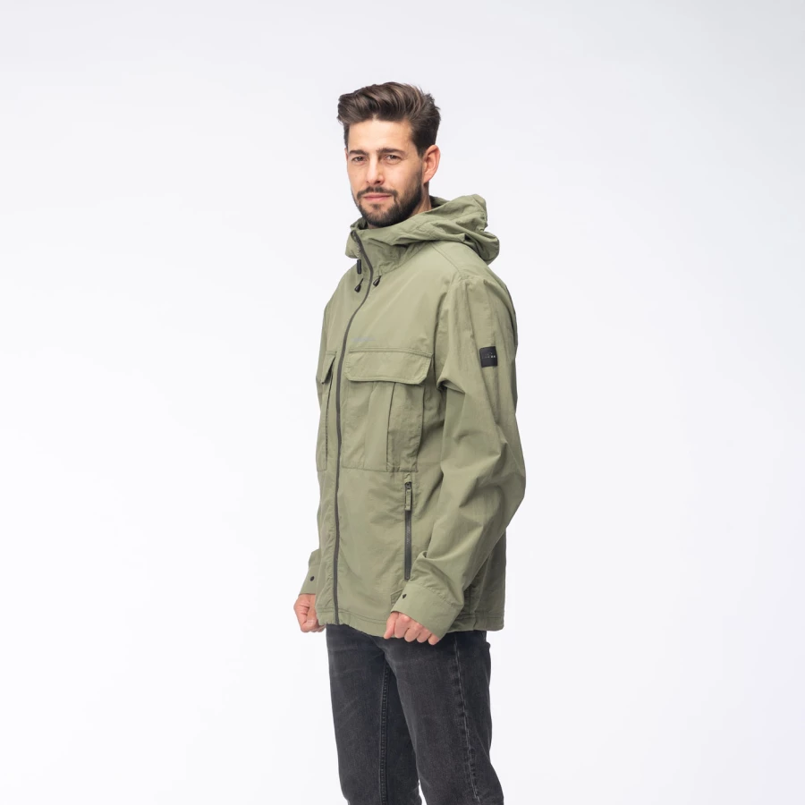 Materiał: 100% poliamid z recyklingu Regularny krój Trwała powłoka hydrofobowa bez PFC Stały kaptur z regulacją Regulacja dolnego obszycia Zamek błyskawiczny na całej długości z osłoną podbródka Mankiety regulowane na zatrzask Siateczkowa podszewka Dwie kieszenie na piersi zapinane na rzep Dwie kieszenie na dłonie zapinane na zamek