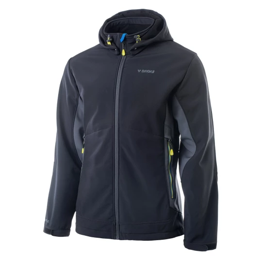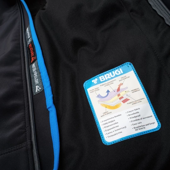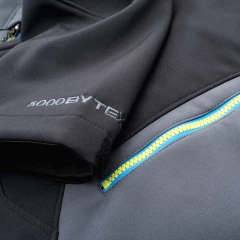 SOFTSHELL SKŁAD MATERIAŁOWY: MATERIAŁ ZEWNĘTRZNY: 96% POLIESTER, 4% ELASTAN PODSZEWKA: 100% POLIESTER (MIKROPOLAR) WYPEŁNIENIE: 100% POLIESTER (MEMBRANA PU) SPECYFIKACJA: WODOODPORNOŚĆ: 5000 mm H2O ODDYCHALNOŚĆ: 5000 g/m2/24 h OCHRONA PRZED WIATREM 3-WARSTWOWA LAMINACJA ODPINANY KAPTUR WEWNĘTRZNA KIESZEŃ