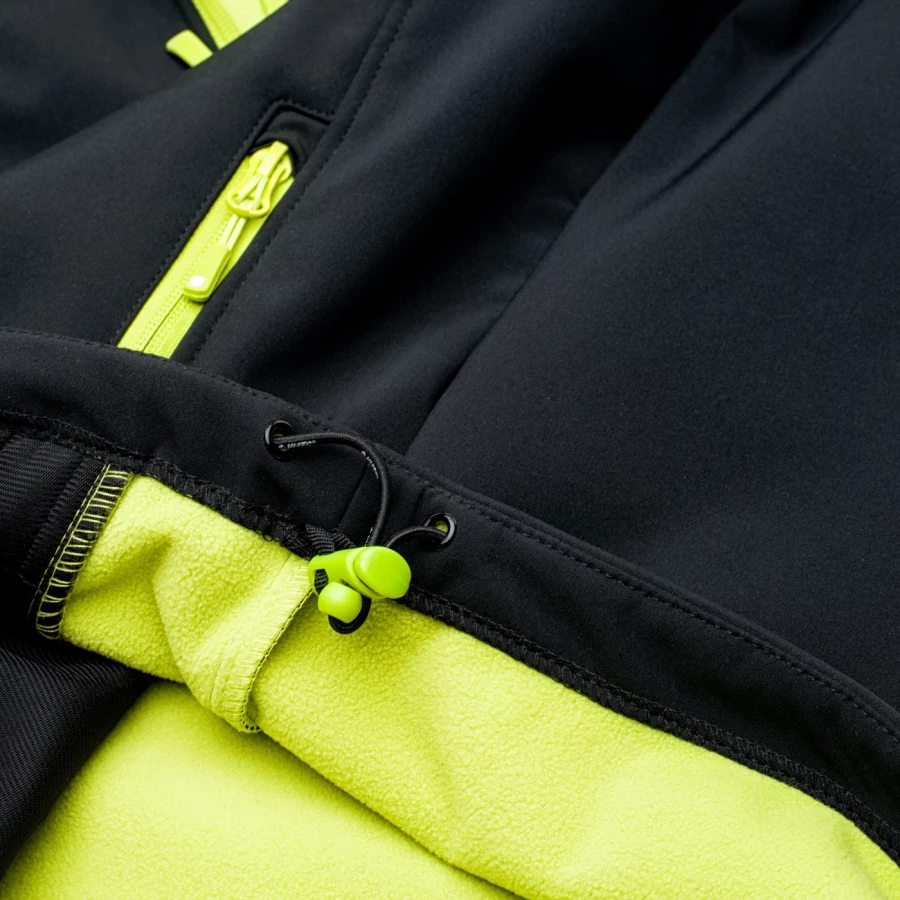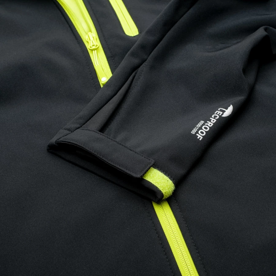 Materiał: Softshell: 94% poliester, 6% elastan; podszycie: 100% poliester; wodoodporność: 8 000 mm H20; oddychalność: 1000 g H2O/m2; wentylacja; polarowe podszycie; głęboki kaptur; boczne kieszenie.