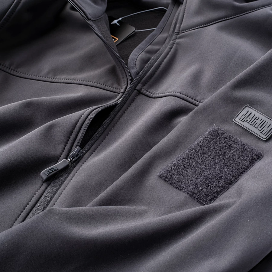 94% Poliester, 6% Elastan Wodoodporność: 8000 mm H20 Oddychalność: 1000 H20/m2 Klejone szwy Regulowane rzepem mankiety Kieszenie boczne na zamek Kieszeń na ramieniu