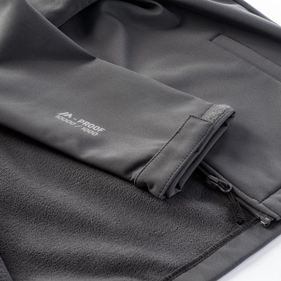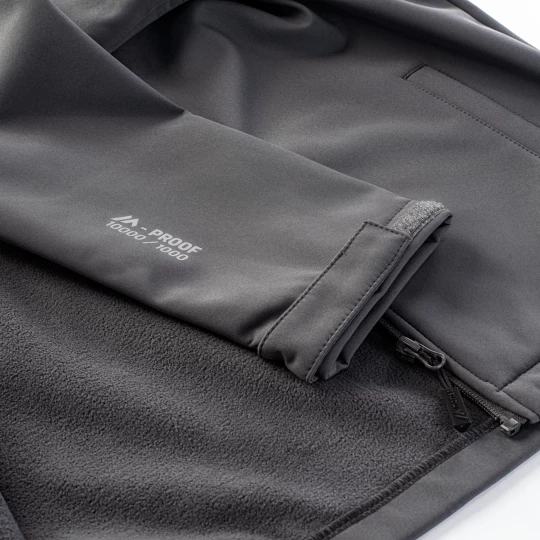 SOFTSHELL SKŁAD MATERIAŁOWY: MATERIAŁ ZEWNĘTRZNY: 94% POLIESTER, 6% ELASTAN PODSZEWKA: 100% POLIESTER SPECYFIKACJA: - WODOODPORNOŚĆ: 10 000 mm H²O - ODDYCHALNOŚĆ: 1 000 g H²O /m² - ODBLASKOWE ELEMENTY - PODSZYTA MIKROPOLAREM