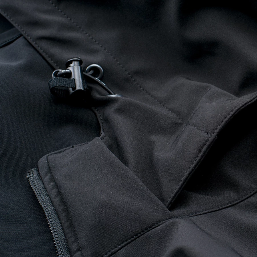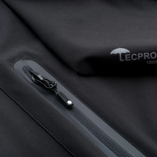 materiał: 96% poliester, 4% elastan podszewka: 100% poliester odporność na działanie wody: 10 000 mm H2O oddychalność: 1000 g H2O / m2 wentylacja pod pachami odpinany kaptur mankiety regulowane rzepami 2 boczne kieszenie zamykane na zamek kieszeń na piersi zapinana na zamek